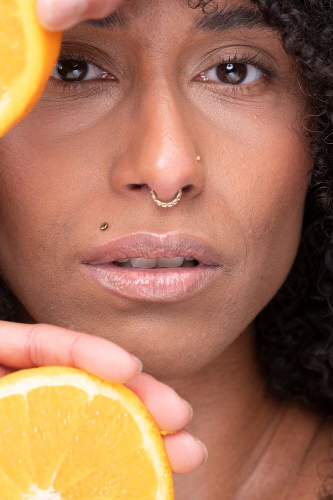 Info: spricht fränkisch, trägt Piercings: Septum, Oberlippe, Nasenflügel
