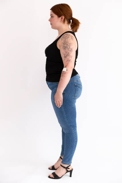 Infos: Tattoos am: linken Arm, rechten Oberschenkel, am linken Knöchel, rechts unter der Brust